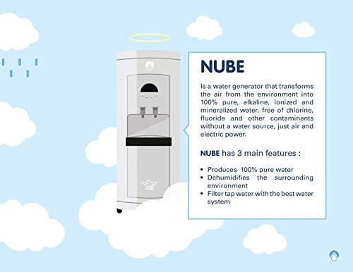 NUBE: Atmospheric Water Generator 8 gal/day – Alkaline + Ionized + Mineralized- Fluoride and Chlorine Free – Sustainable – Carbon + Osmosis Filter – UV – Cooler/Heater Dispenser – Dehumidifier (White)