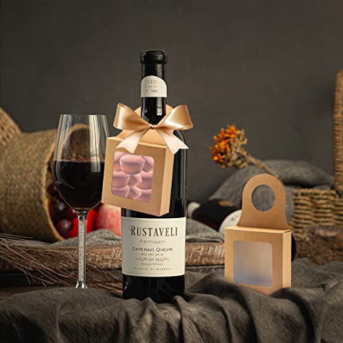 25pcs Kraft Paper Wine Bottle Box with Window Hanging Foldable Gift Boxes Wine Boxes for Gifts Empty Wine Bottles for Decoration Bottle Hanger Favor Box (Kraft Color, 3.5 x 3.5 x 1.2 Inches)