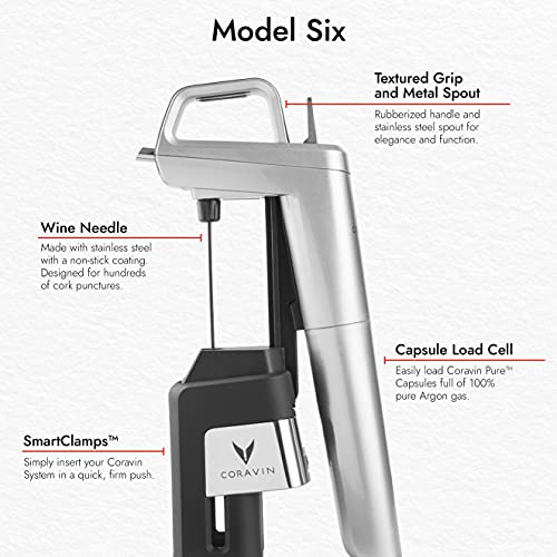 Coravin Model Six Advanced – Wine Preservation System and Aerator – Silver – Includes 3 Argon Gas Capsules