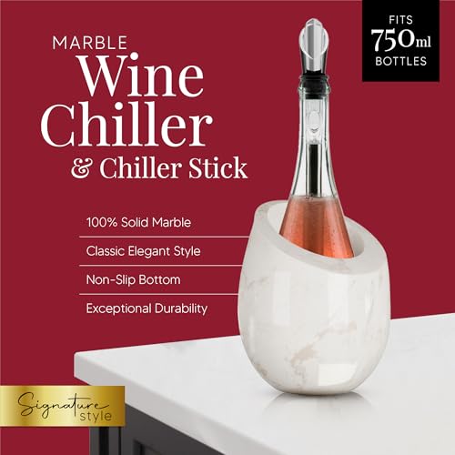 Homeries Marble Wine Chiller Bucket – Wine & Champagne Cooler for Parties, Dinner – Keep Wine & Beverages Cold, Wine Chillers for Bottles – Holds Any 750ml Bottle (Gloss White)