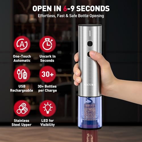 Home » Wine Accessories » Secura Rechargeable Electric Wine Opener Set, 4-in-1 Wine Set with Electric Corkscrew Wine Opener, Electric Wine Aerator & Dispenser, Foil Cutter, Vacuum Wine Stopper for Wine Lovers, Silver